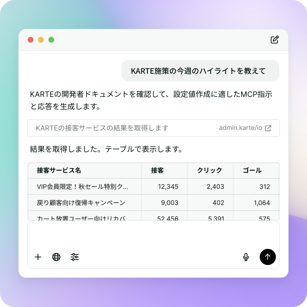 「Remote MCP」を活用すれば、KARTEで担う顧客分析、パーソナライズ施策の実行、コンテンツ制作、効果測定といった顧客コミュニケーションにかかわる一連の業務を、その企業の環境に合わせてAIワークフロー化することが可能です。